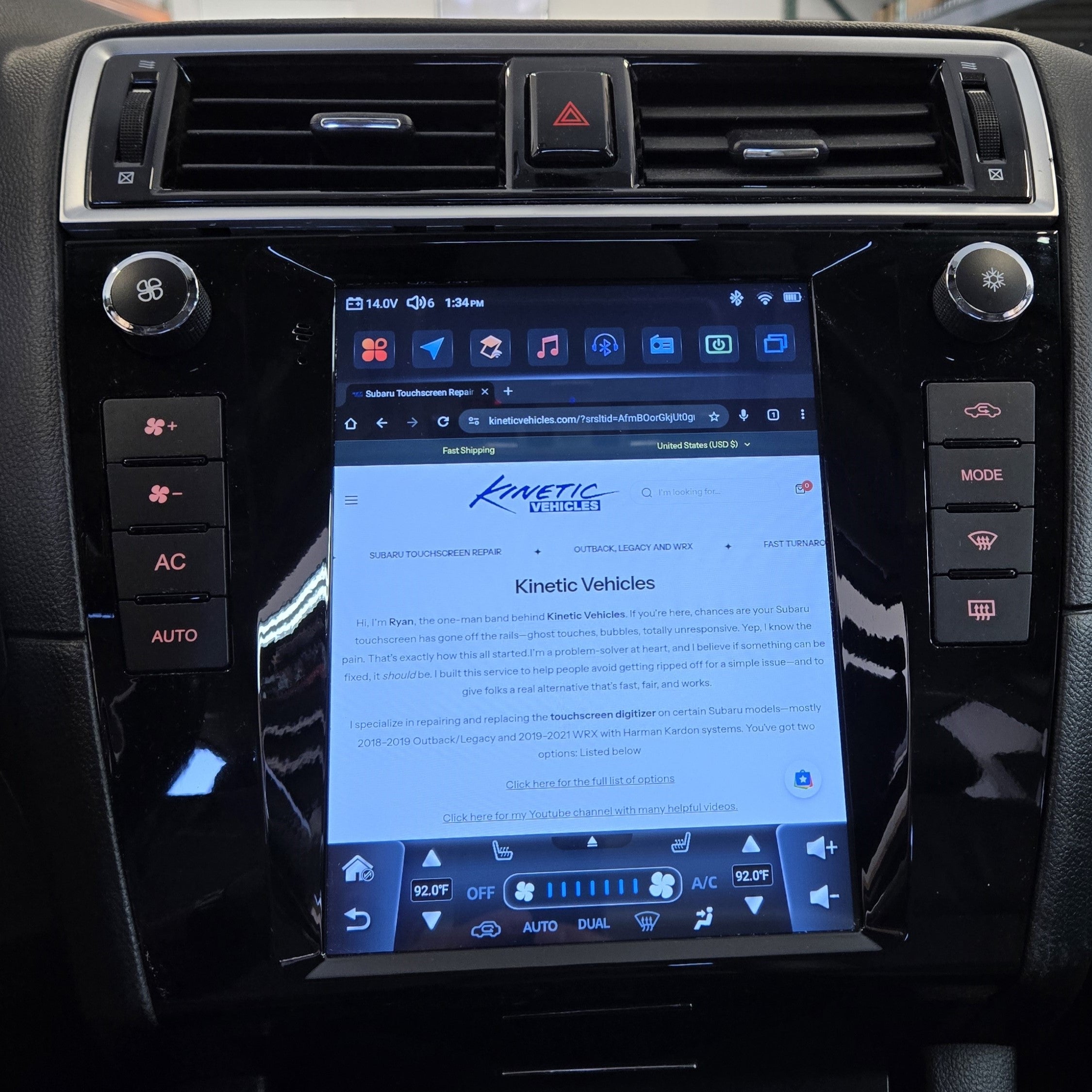 This Tesla Style 9.7" touchscreen replaces your delaminated or broken 2015 to 2019 Subaru Outback infotainment system.